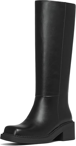 1. AMINUGAL Womens Knee High Boots Square Toe Chunky Block Low